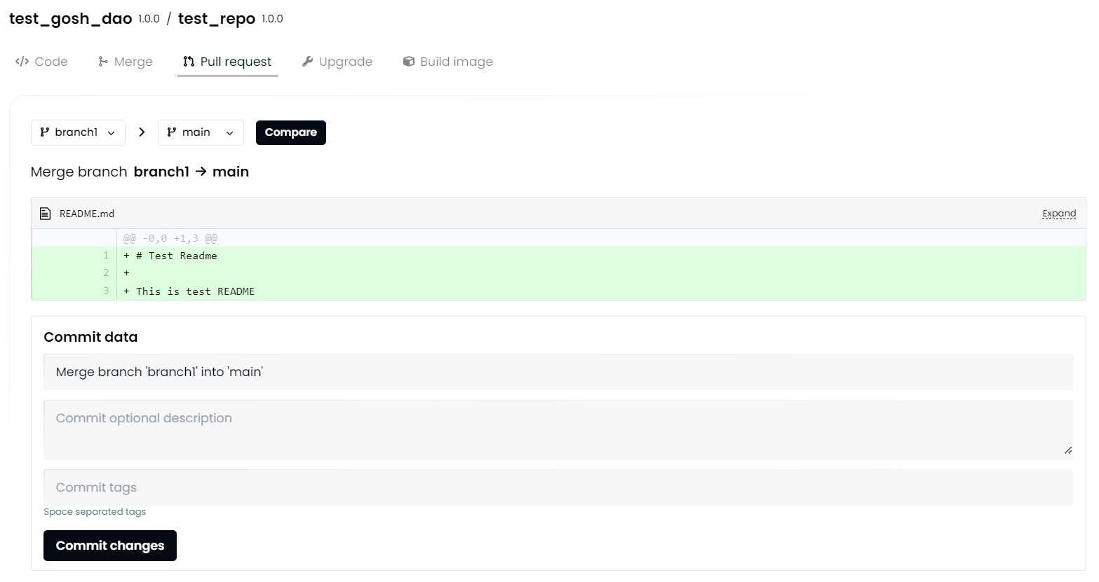 When merging into the main branch, and in some other cases (depending on DAO setup), a DAO proposal will be initiated by trying to commit.