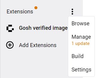 Images built directly from code stored in GOSH can be verified as GOSH-sourced in the Docker Extension, ensuring security of the software supply chain. You will always know what code specifically is running in your containers, and that none of it was tampered with during build.