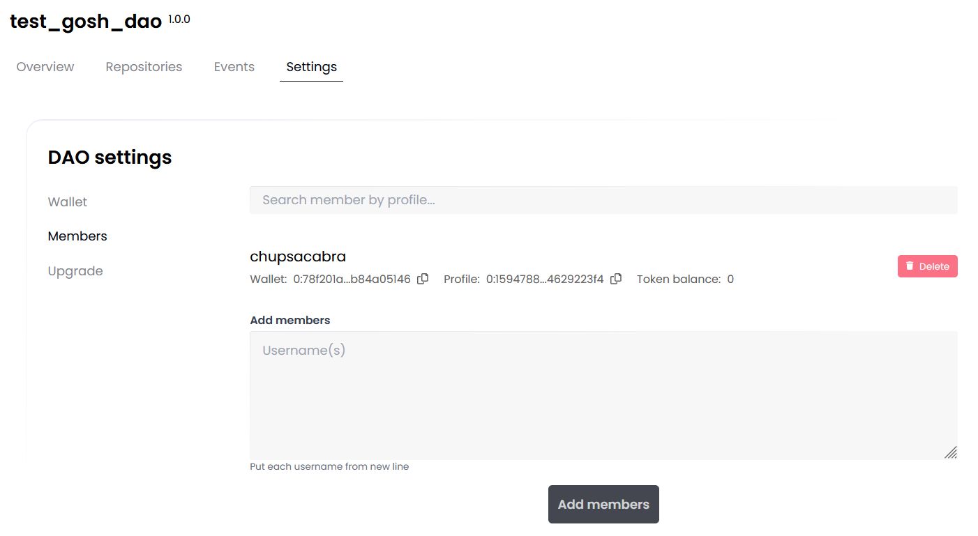 The second member is the GOSH DAO Bot. It will synchronize repositories with GitHub on GOSH.
