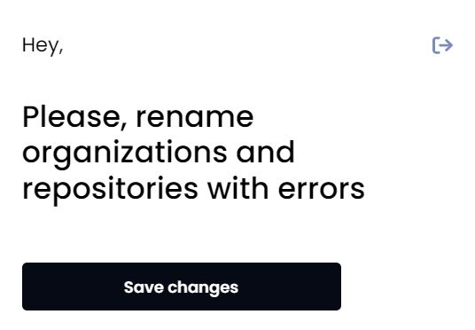 If the name of the organization or repository already exists, you will receive the message. Change the name, click save changes and confirm the action with a pin code.