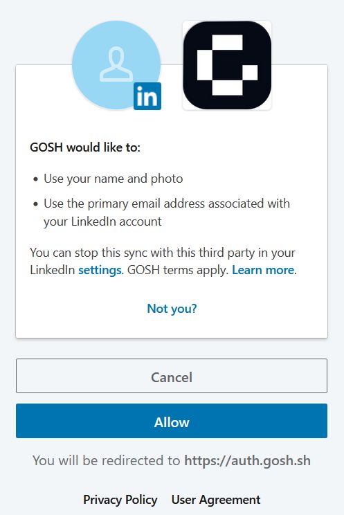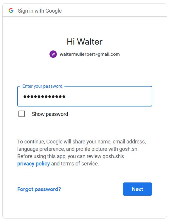You can use your Google account to sign up for GOSH click Sign in with Google