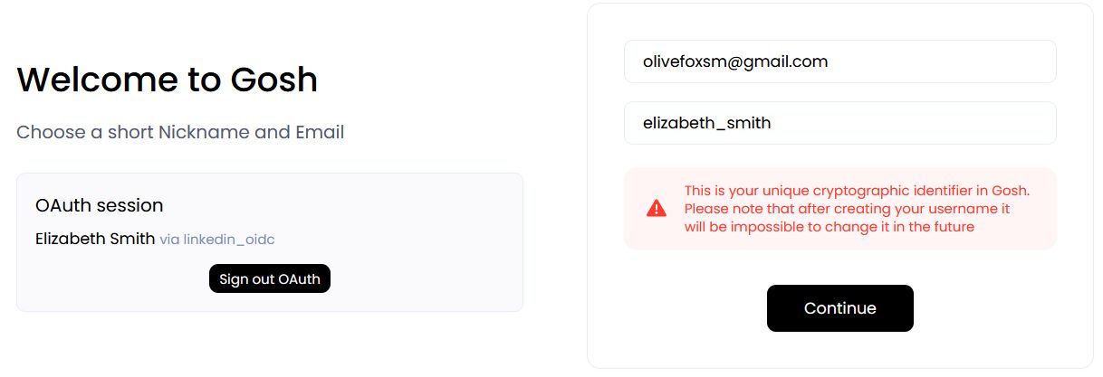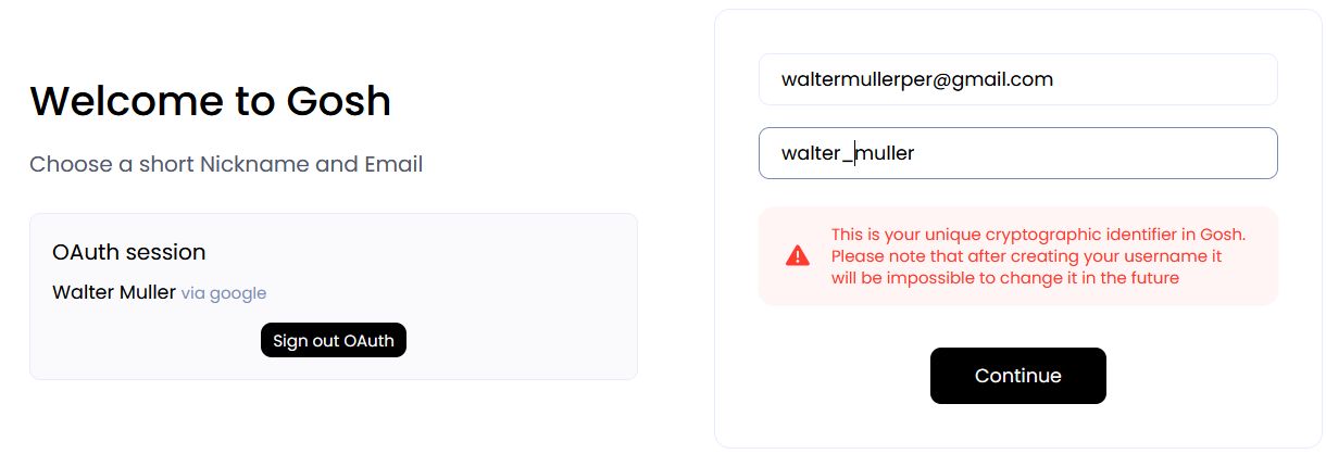 Then choose your username in GOSH. This will be your unique cryptographic identifier in GOSH.