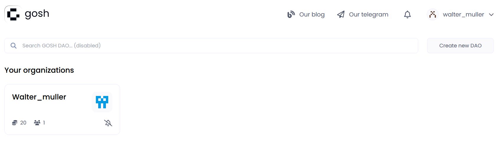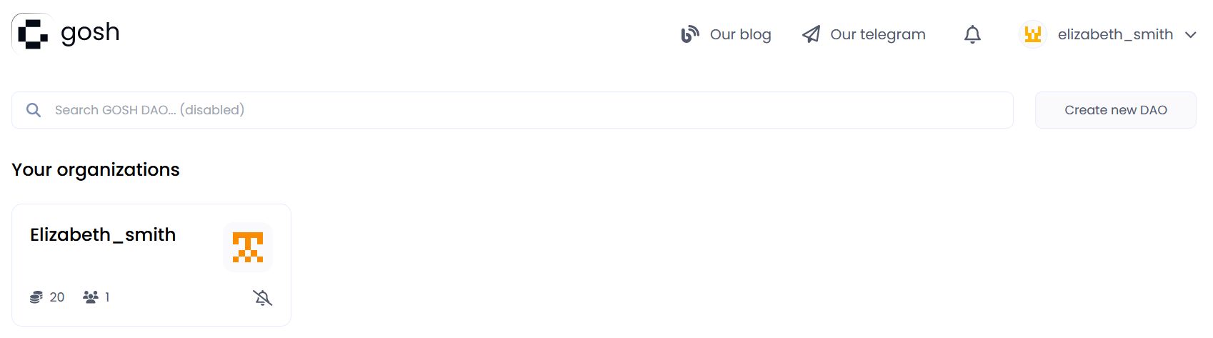 In the list of organizations received from GitHub, select the organization from which you want to make a DAO on GOSH