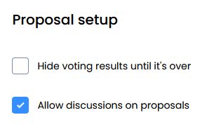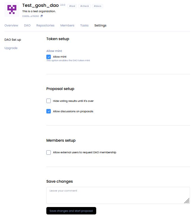 Then add a comment on changing the settings for other members of the DAO and click Save changes and start proposal.