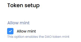 In the Token Setup section, you can create a proposal to ban the issue of tokens from this DAO by unchecking the box.