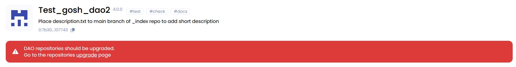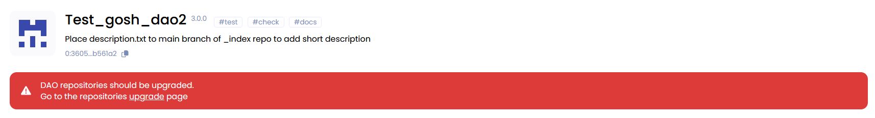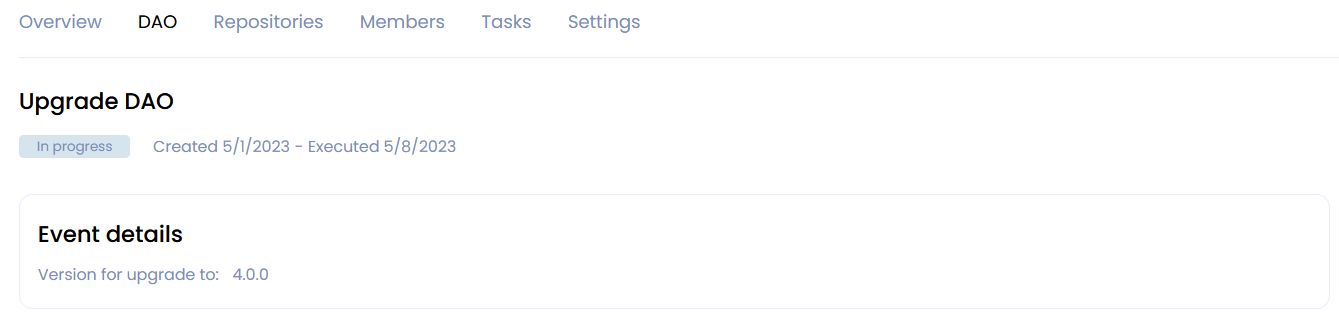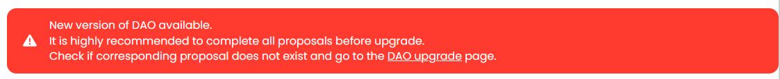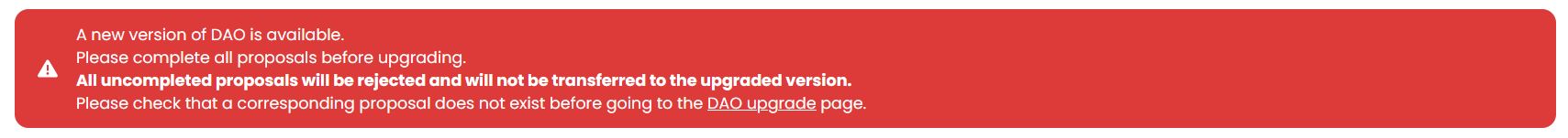 You can see a message about the availability of a new version and an invitation to update in the DAO.