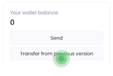 To do this, go to the Overview tab in the Your wallet balance section and click Transfer from previous version.