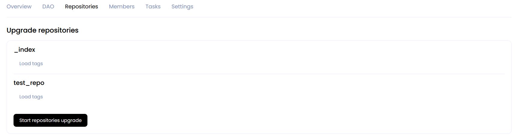 Then, a new window will open up, and you'll need to click on "Start upgrade complete process" to begin the data migration process between versions of DAOs.