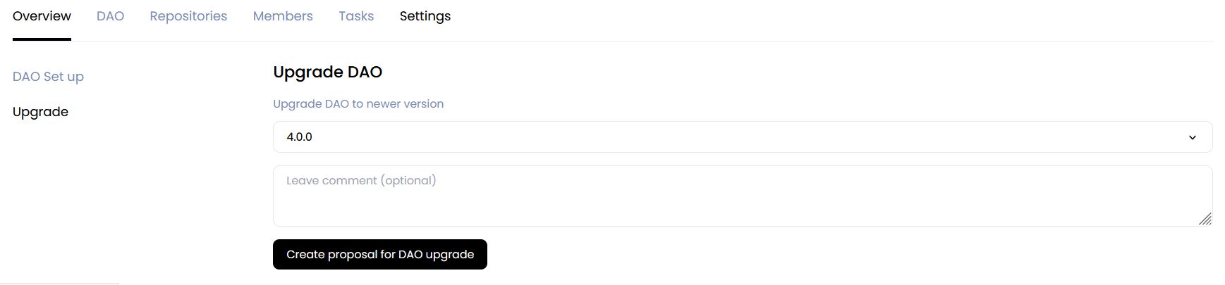 Select the version you want to upgrade and click Create proposal for DAO upgrade: