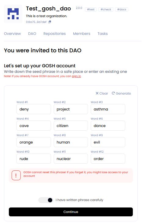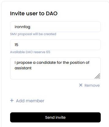 To do this, on the tab Members in the section Invite user to DAO click on Get one-time invitation link.