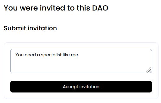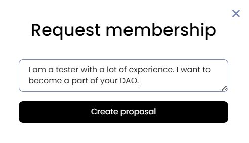 In the window that opens, write who you are and why you want to become a member of this DAO. This description will help the members of the DAO to make a decision when voting.