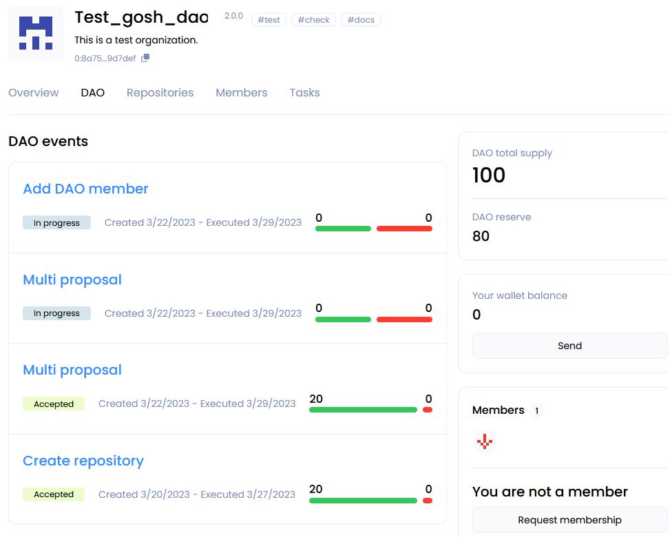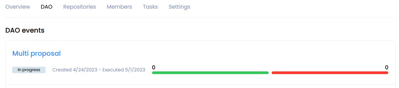 As a result, a Multi proposal will be created, and you will be redirected to the DAO events.